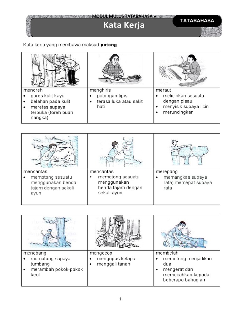 Baca versi flipbook dari Buku Bina Ayat - contoh jawapan. Contohnya antara memangkas dengan mencantas dan membelah dengan mengerat. Memutuskan sesuatu dengan pisau gergaji dan lain-lain memenggal mengerat.
